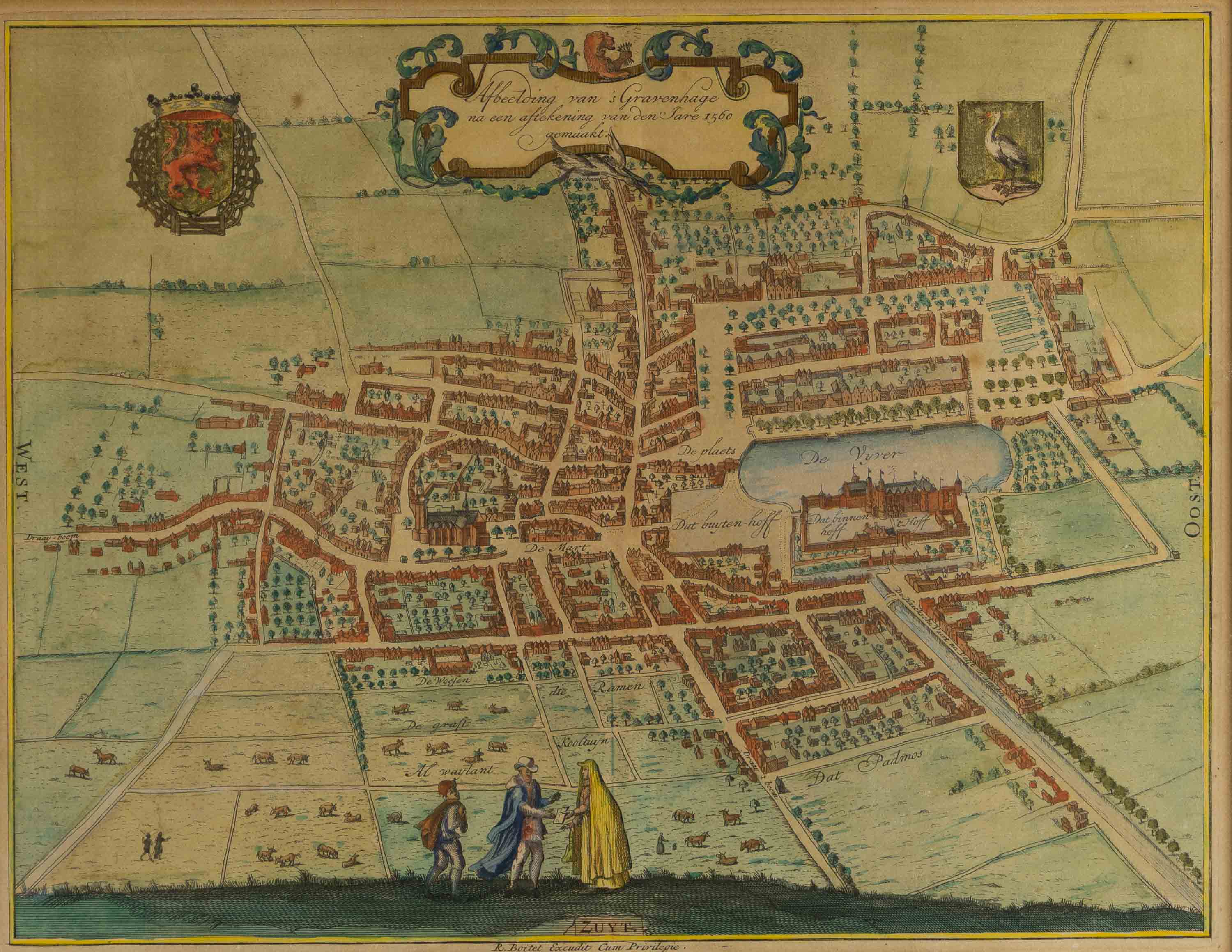 Handgekleurde kopergravure, 1730, 25 x 33 cm / 42 x 49 cm.