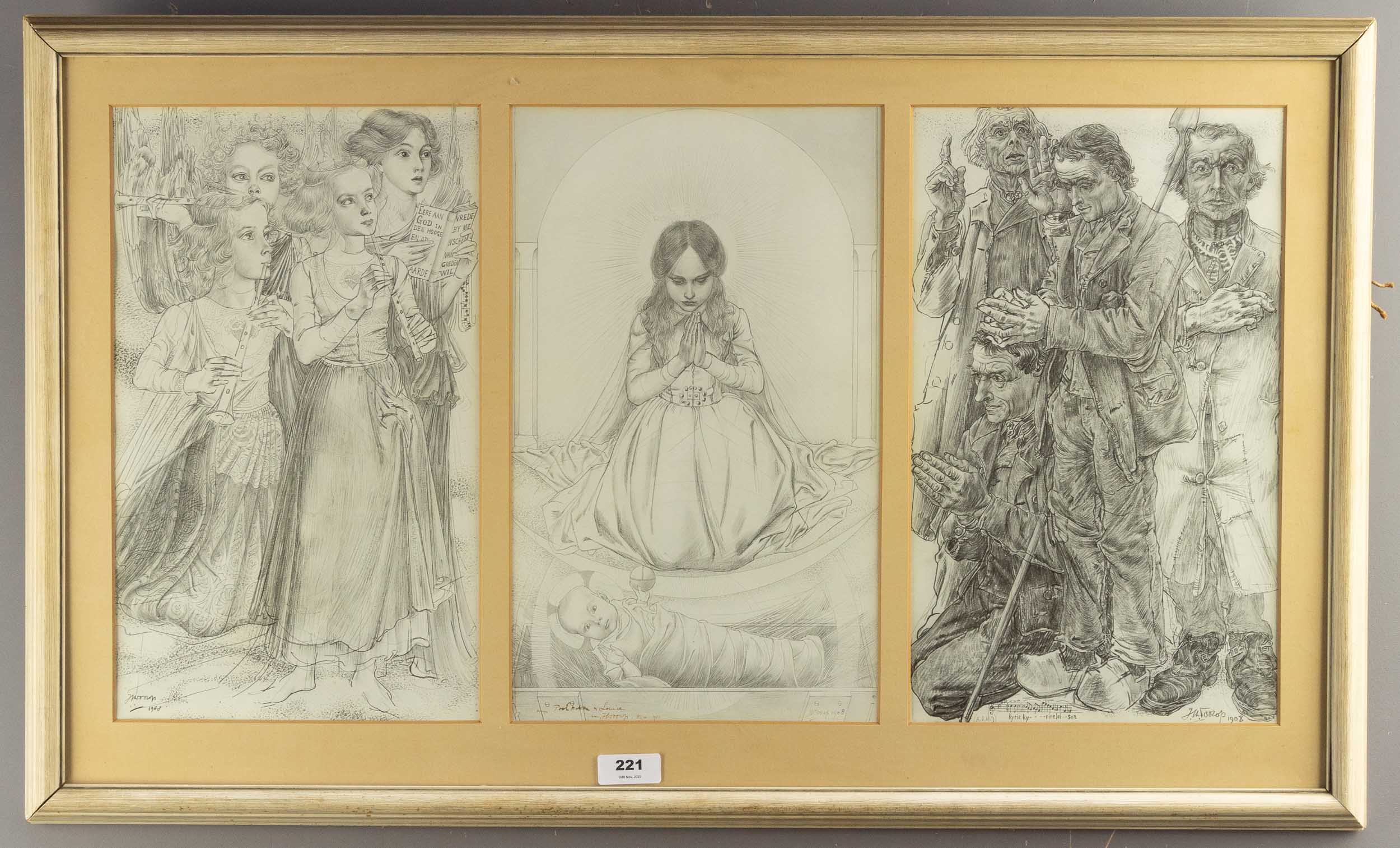 Potloodtekening, r.o. gesigneerd en gedateerd "Katwijk 1908", 15 x 30 cm / 22.5 x 37.5 cm.