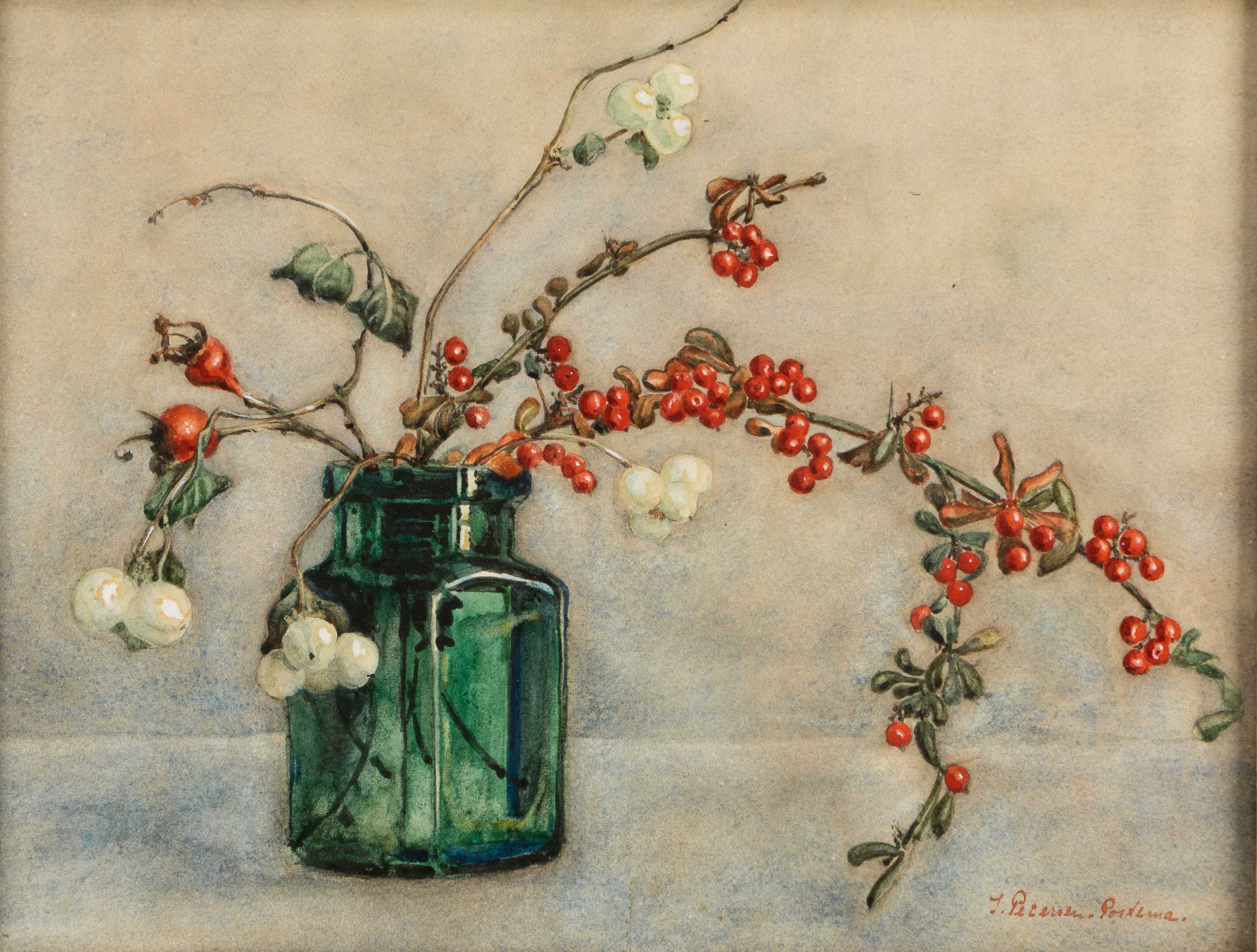 Olieverf op doek, r.o. gesigneerd en gedateerd 1902, gaatje in doek, 62 x 42 cm, lijst: 96 x 76 cm.