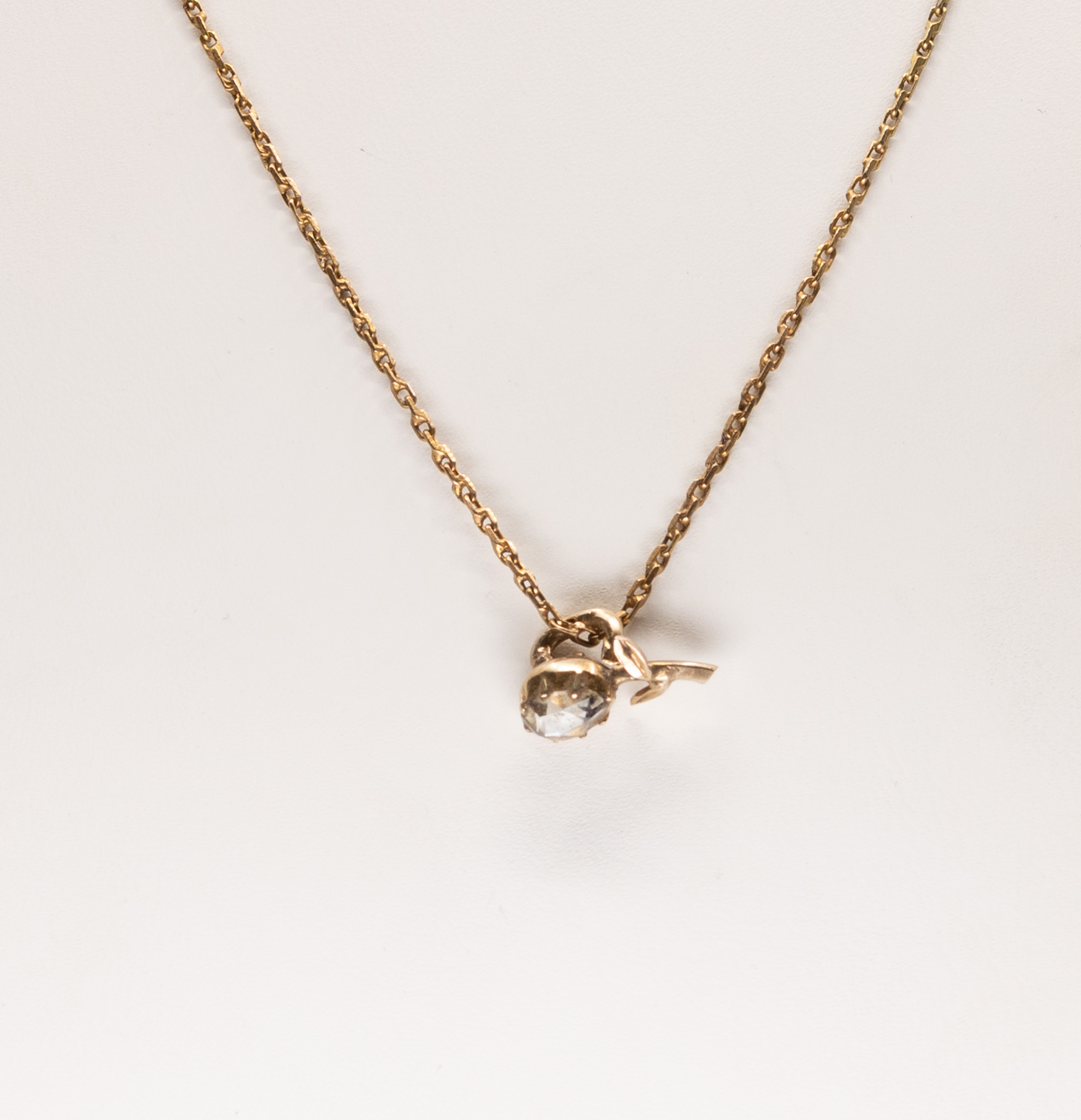 De hanger 14 krt., in de vorm van een tulp l. 44 cm - oogje hanger sluit niet geheel.