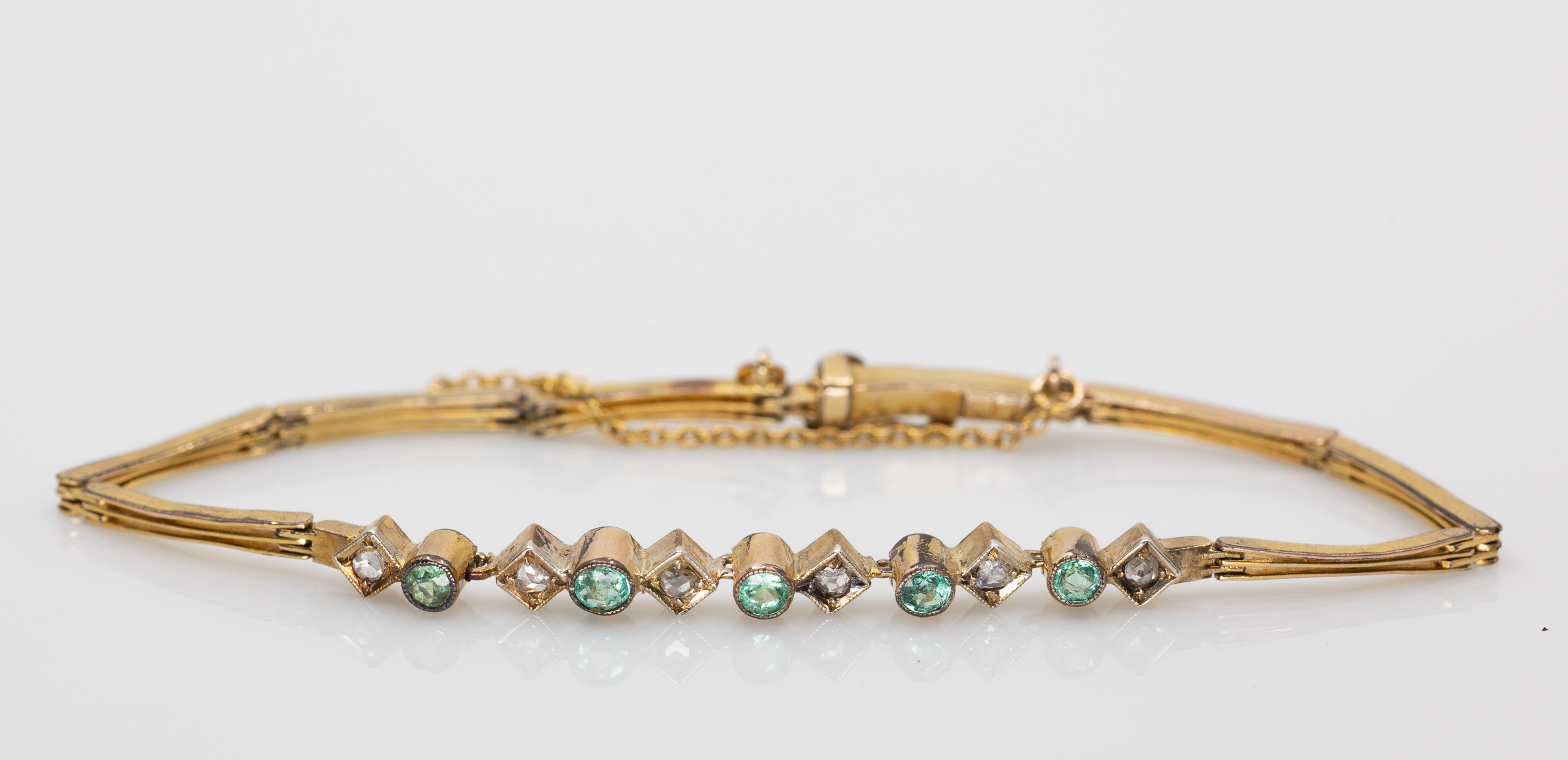 Onedel, semiflexibel, de briljant geslepen stenen in milgrain zetting, l. 19 cm.