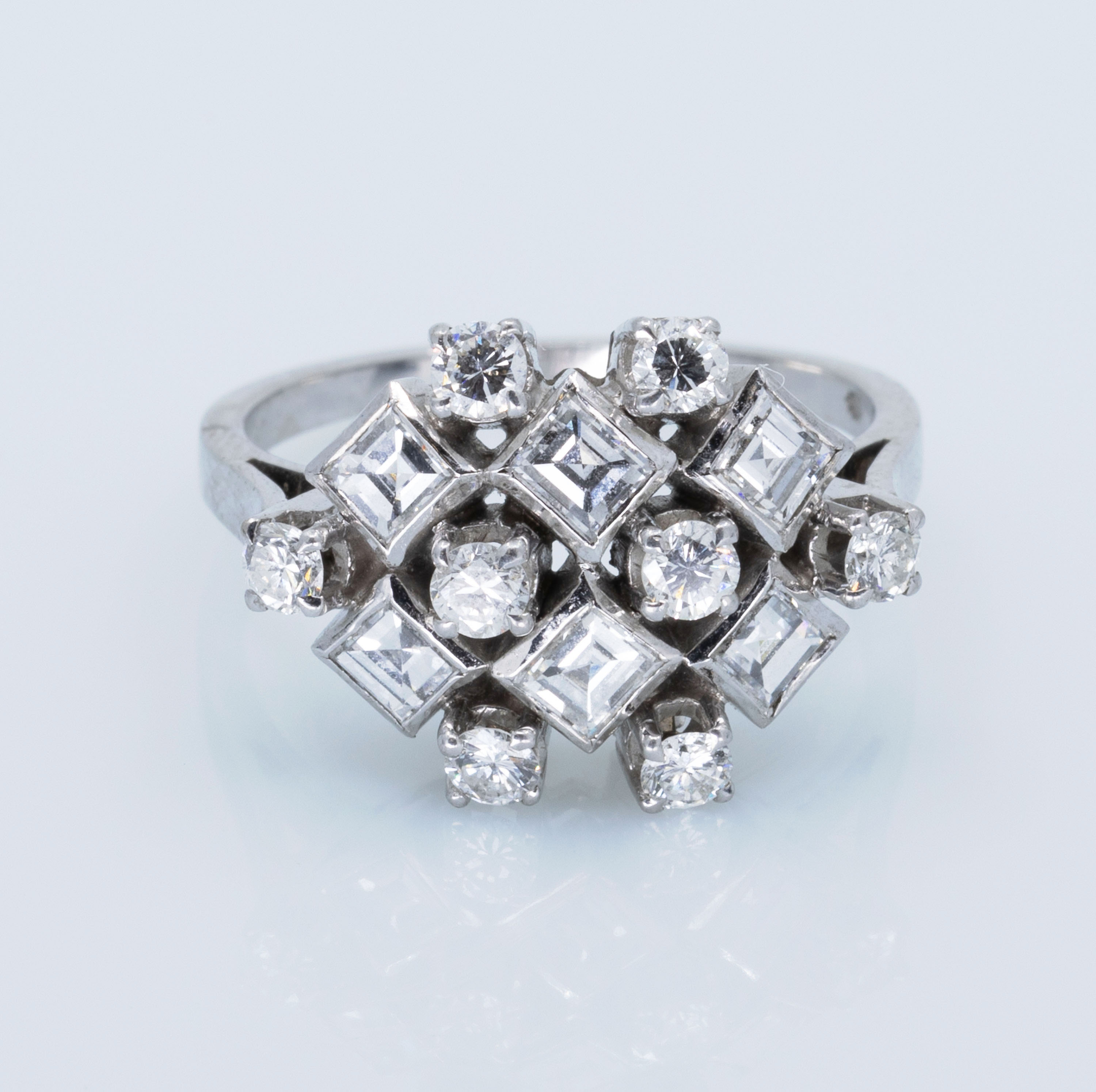 14 krt., bezet met 8 briljanten, 6 carré geslepen stenen, maat 18-.