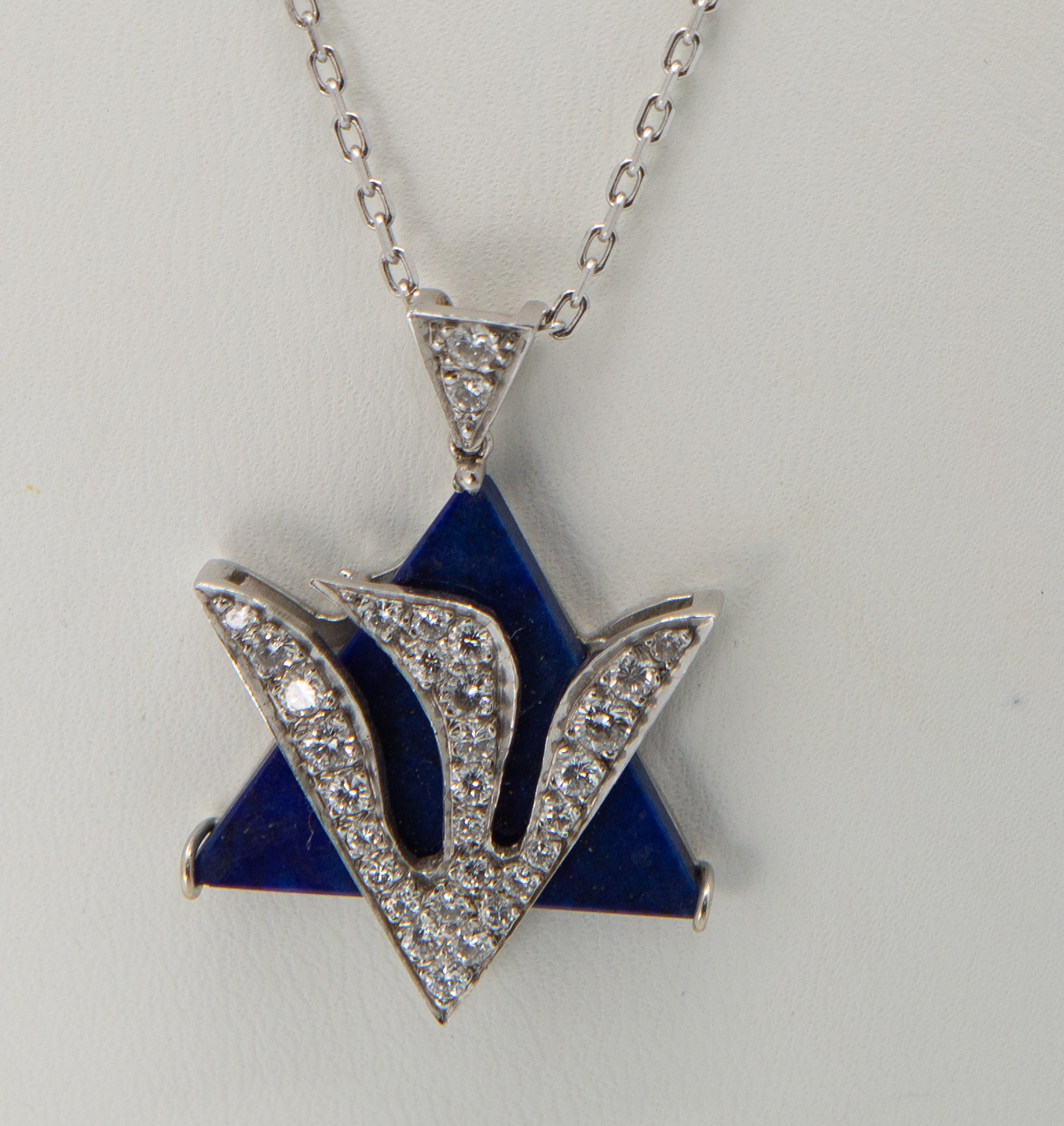 18 krt. witgoud, aan kettinkje, l. 27 cm, bruto gewicht 8.2 gram.