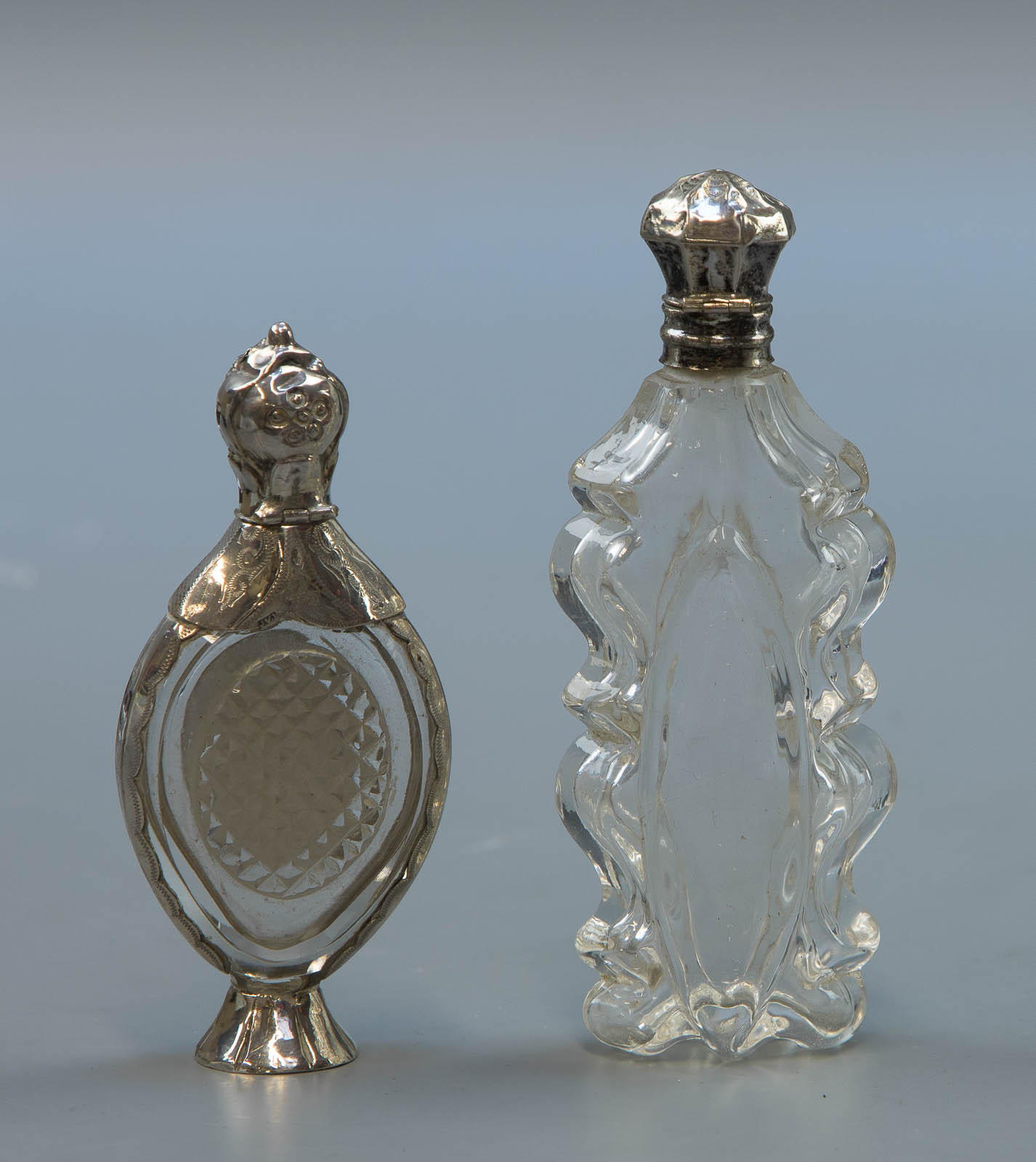 Met zilveren doppen en applique, Holland, 19e eeuw, h. 12 en 10 cm (gedeukt).