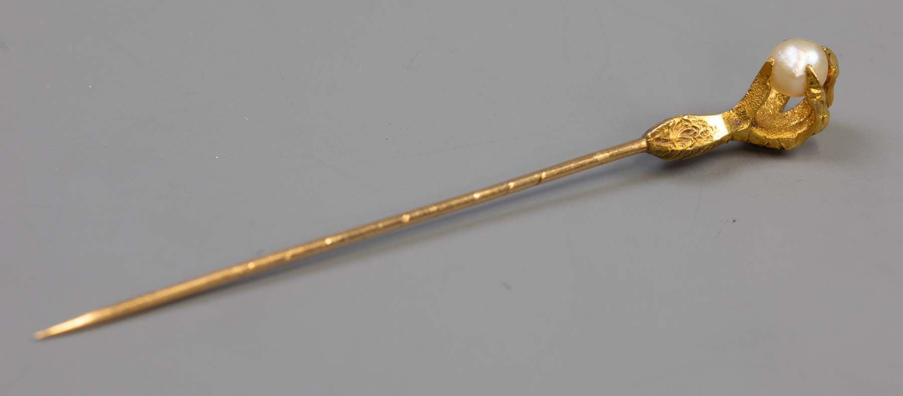 18 krt. goud, l. 7 cm, bruto gewicht 33 gram.