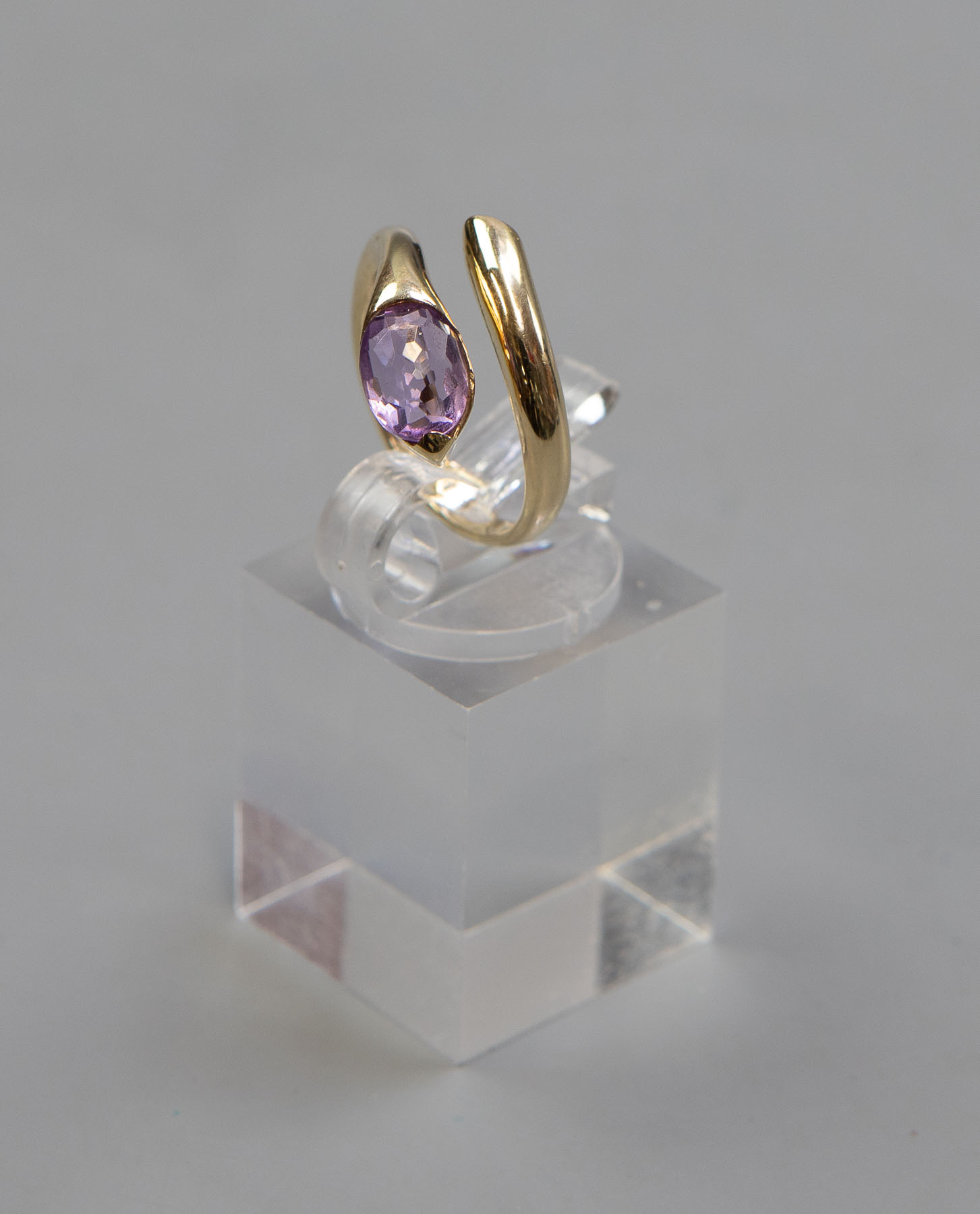 14 krt., kop bezet met een ovale facet geslepen amethist, maat ca. 16.5 (kan eenvoudig groter en kleiner gemaakt worden).