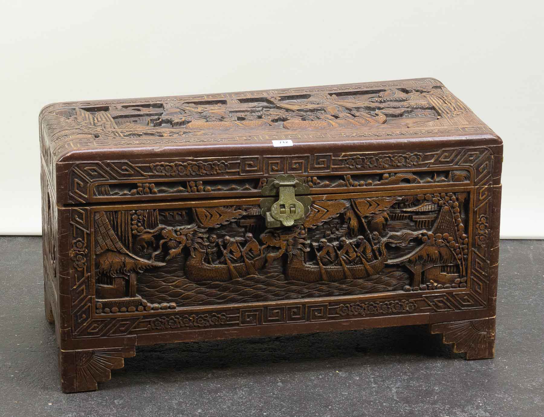 Met decor van een havenstad,h. 48 x b. 87 x d. 43 cm.