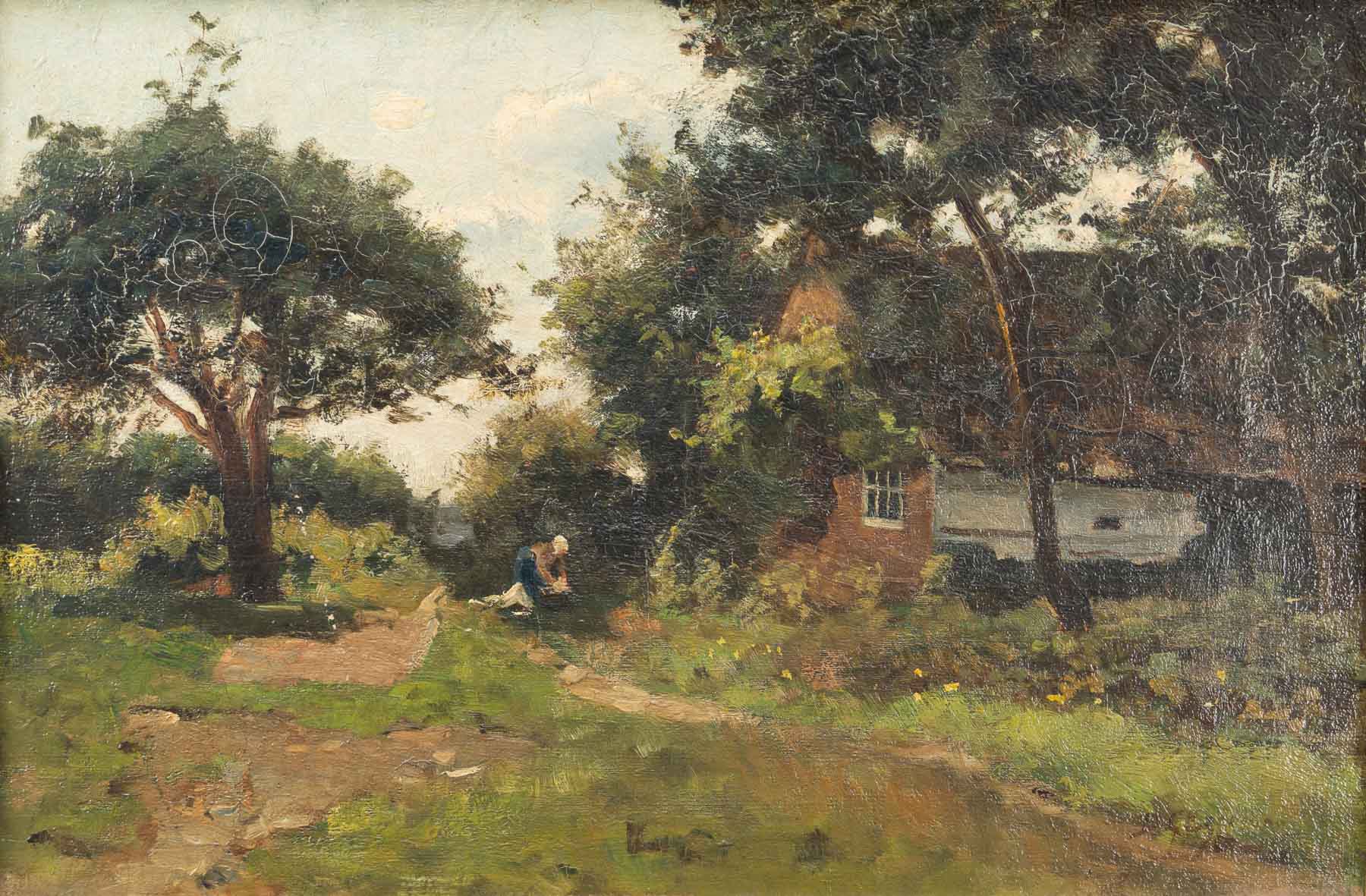 Olieverf op schilderskarton, l.o. gesigneerd, 14.7 x 20.8 cm.