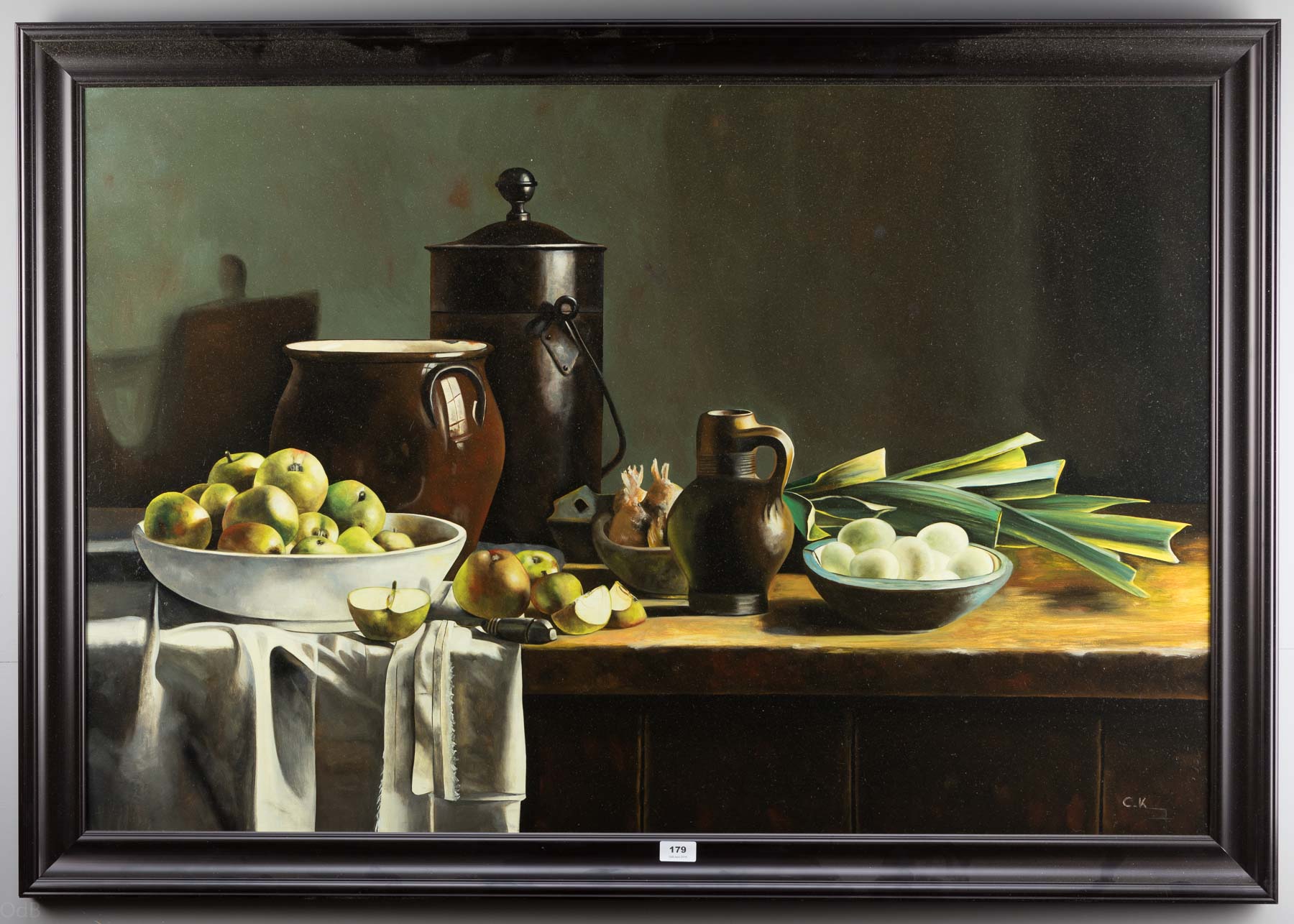 Olieverf op doek, r.o. gesigneerd, 120 x 80 cm.