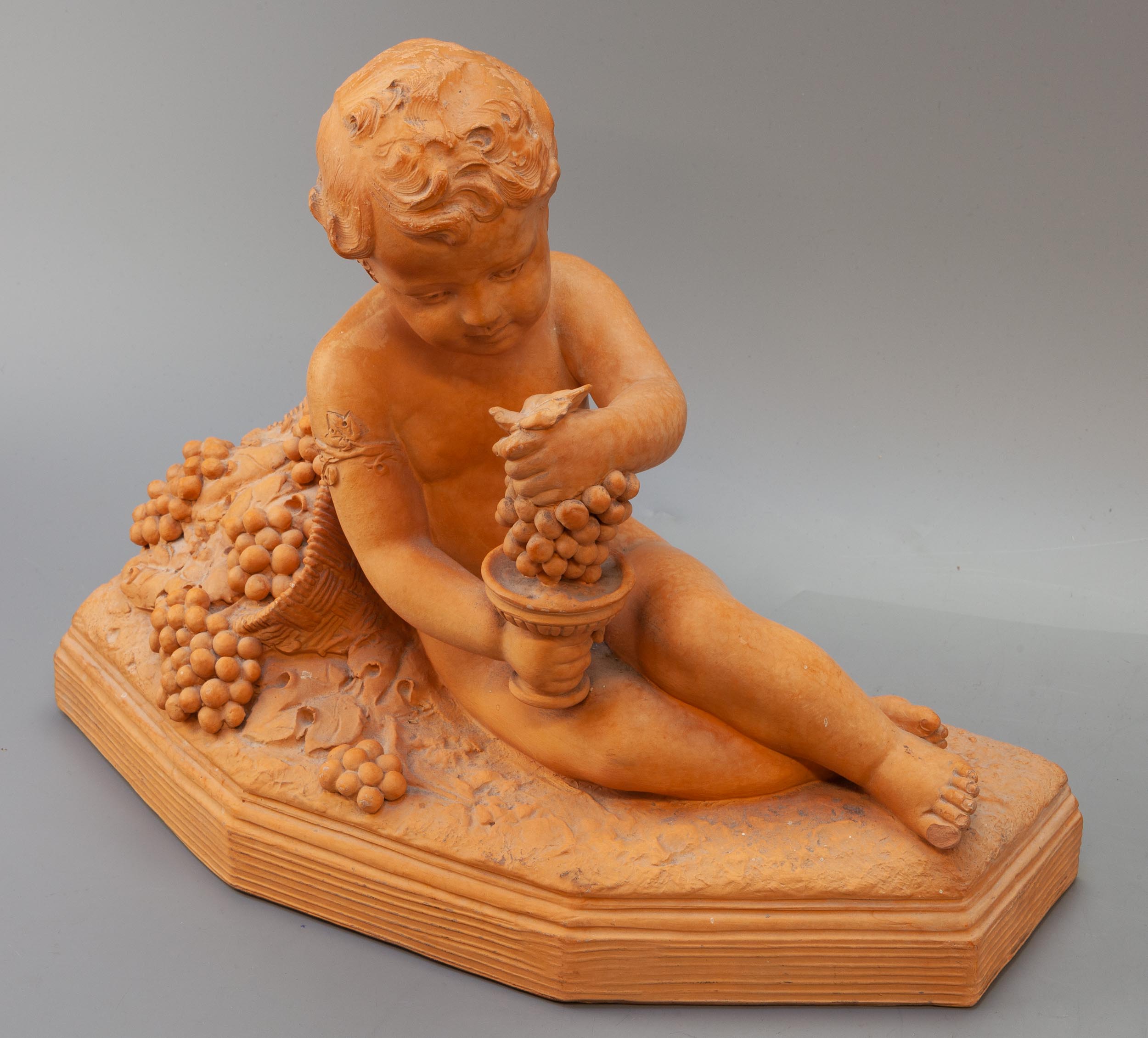 Terracotta, gemerkt "Deposée B. Rezi" h. 28 en l. 50 cm - chipje aan teen.