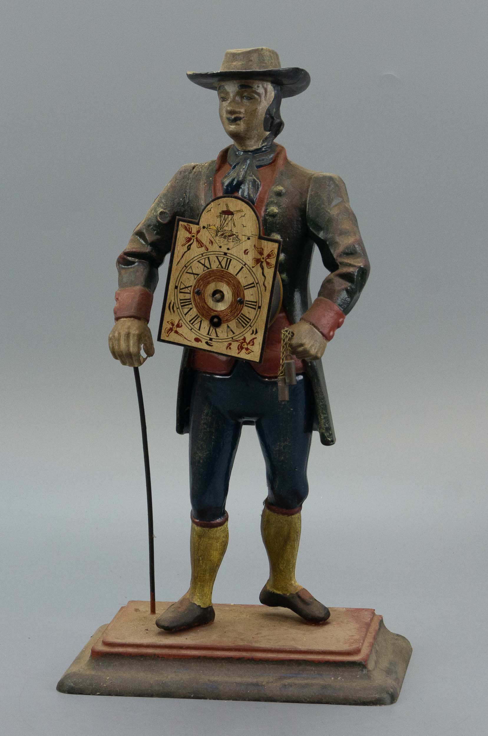 Beschilderd metaal, h. 39 cm, slinger ontbreekt.
