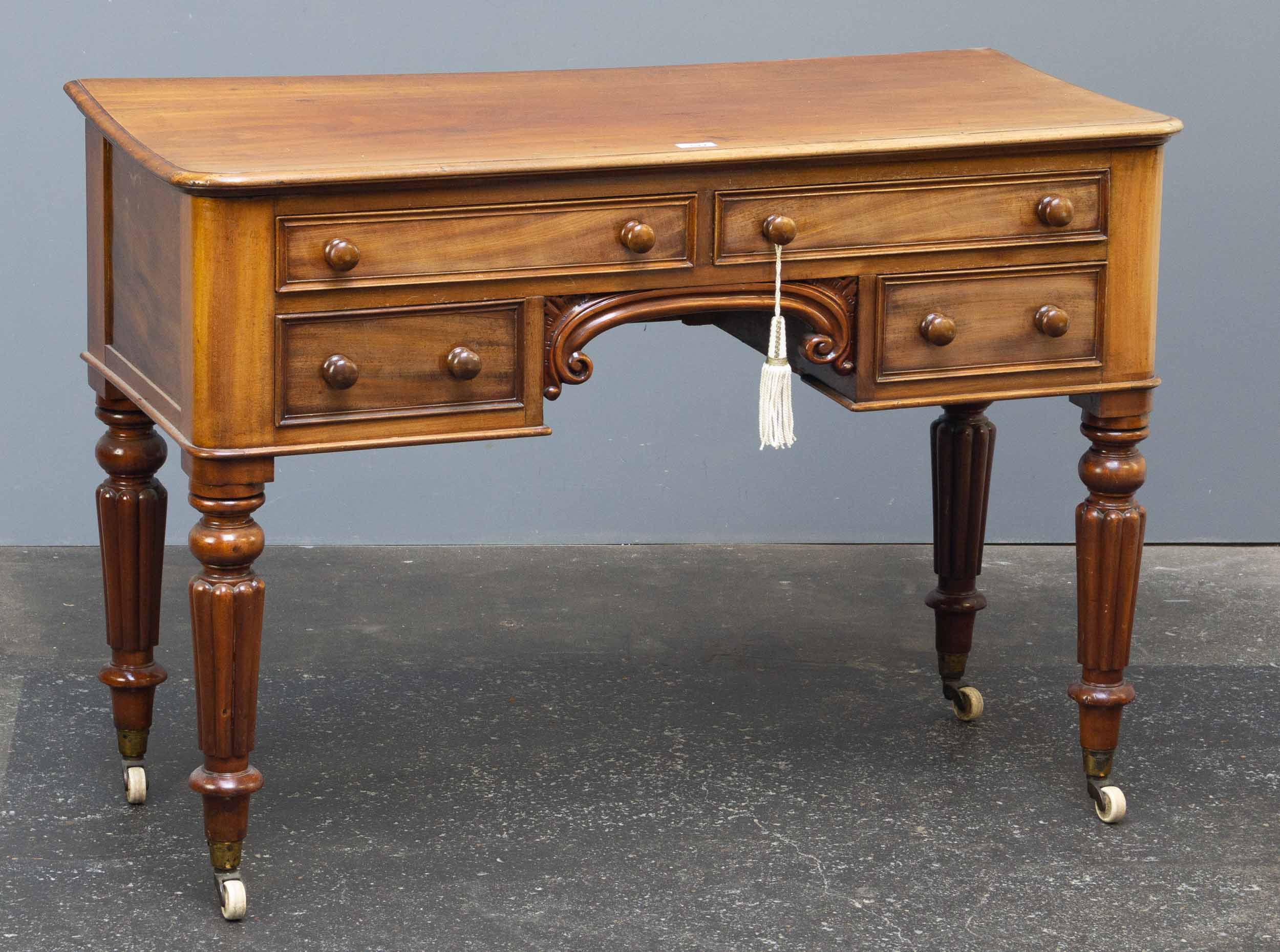Mahoniehout, 4 laden h. 75, bladmaat 106 x 50 cm.